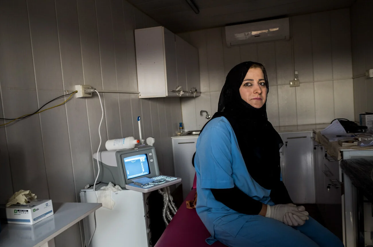 ‘A bad situation’ for women. Sherin Moustafa Ahmad, 38, fled Raqqa with her family after IS took control of the city in January 2014, declaring it the capital of its caliphate. She returned in 2017 after the liberation to find her home destroyed by shelling, and went back to work as a midwife in a mobile clinic. Ahmad says the shortage of clean running water and poor sanitation facilities means women and girls end up with a variety of gynaecological problems, like urinary tract infections or cystitis. “We try to reduce the suffering of all those affected by the war, [either] by IS or the coalition bombing,” she says. “It’s a bad situation. [Women] don’t have the money to go to private clinics so we provide them free gynaecological exams, ultrasounds, and [other] consultations.”