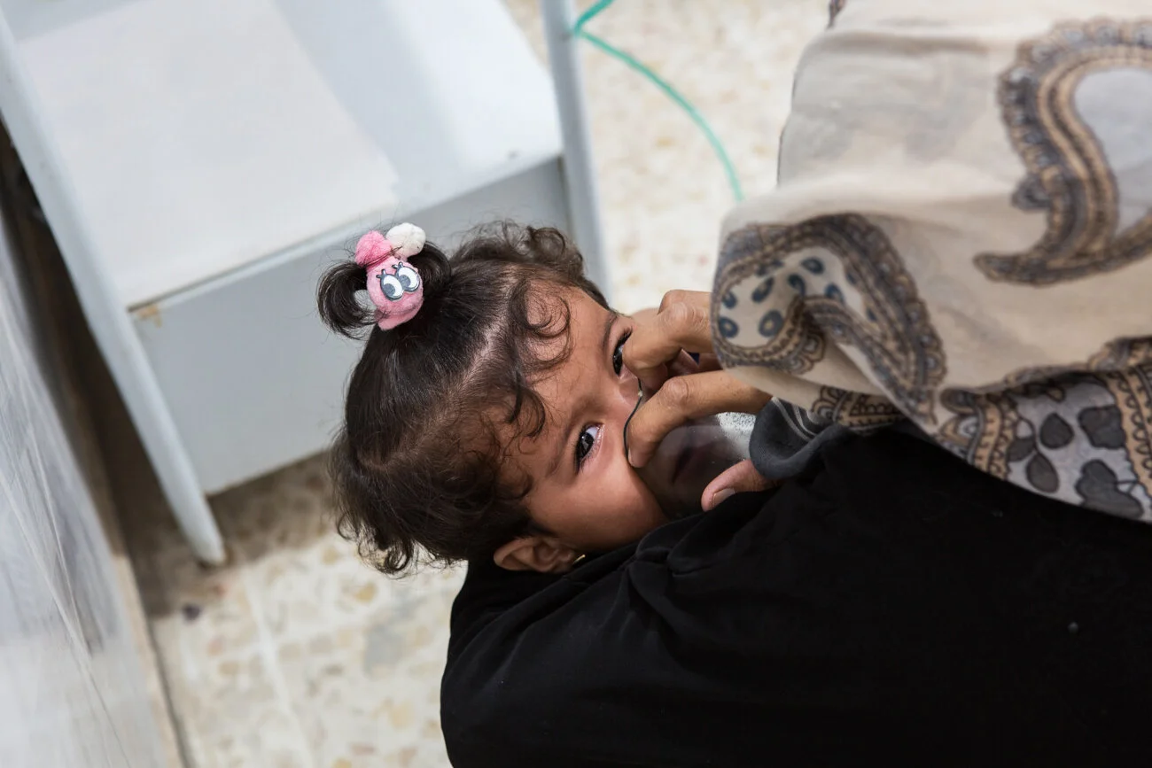 Sheltering from the rain in an abandoned building in al-Khayala, Kheffe Mahmoud says the mobile clinic is one of the only visible presences of aid from the outside world: “They are the only ones helping us in this area. We are abandoned. The world forgot us.”